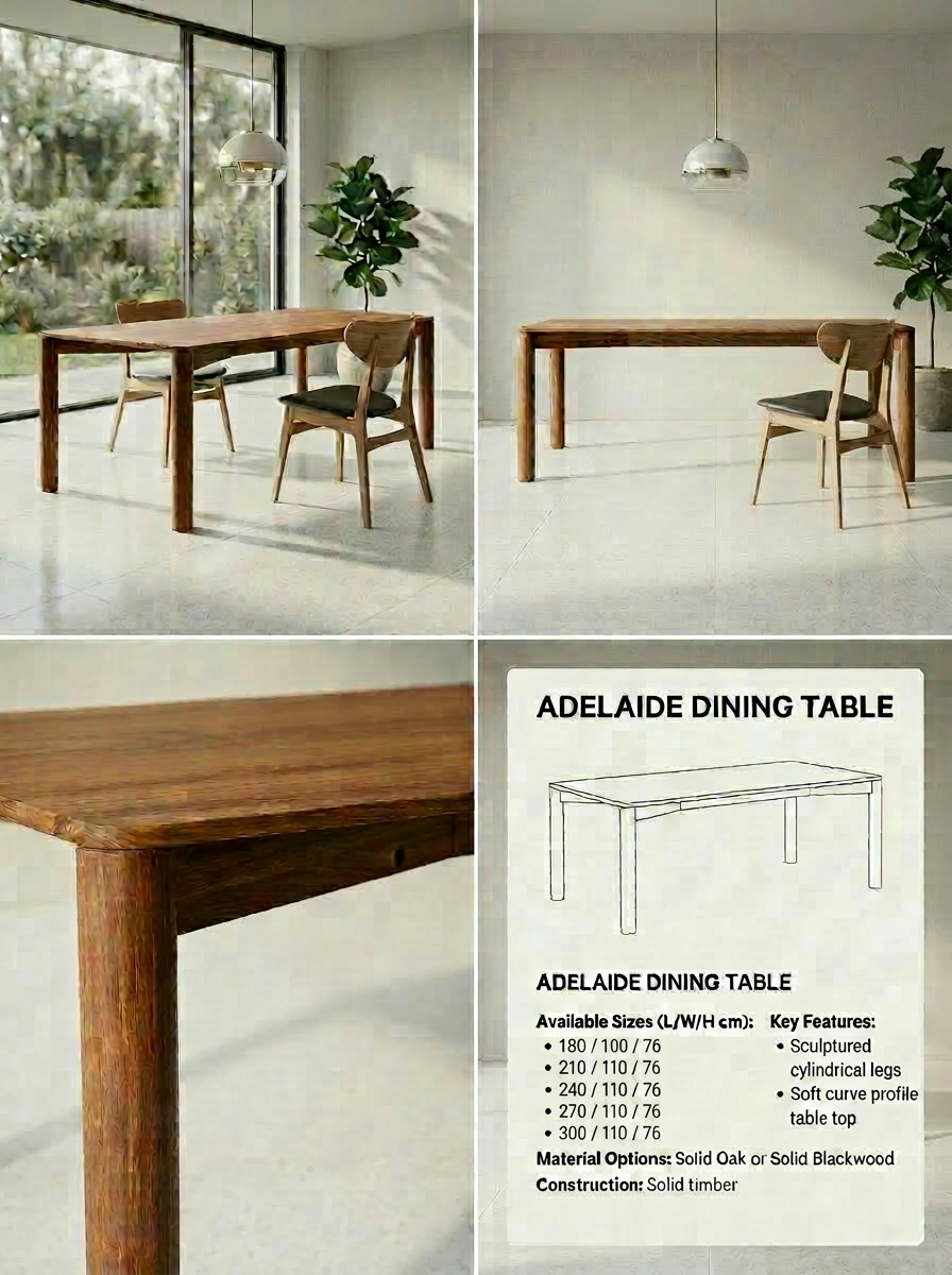 Whether you appreciate fine craftsmanship or desire to elevate your dining experience, the Adelaide dining table is the perfect choice. Its superior design and exceptional construction make it a worthwhile investment that will undoubtedly enhance your home for years to come. Elevate every meal to a special occasion with the extraordinary Adelaide dining table.