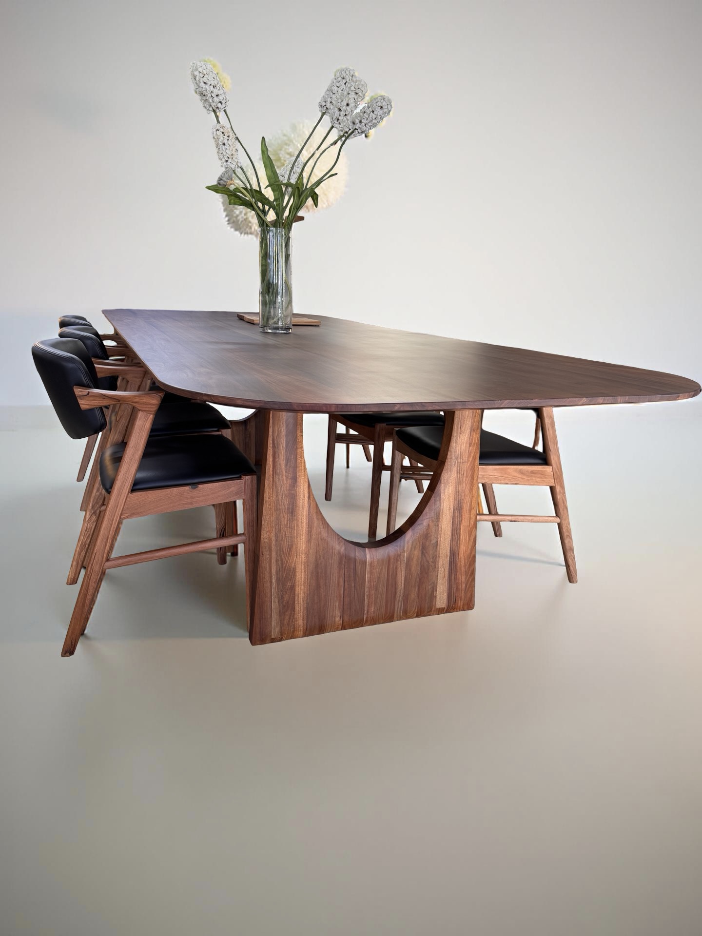 The Nairne Dining Table is a stunning centerpiece that can dramatically enhance the atmosphere of any dining room, transforming it into an inviting and stylish gathering space. Its design features graceful curves that flow seamlessly into bold geometric shapes, creating a visually compelling focal point that captures the attention of anyone who enters the room.