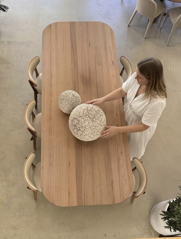 Crafted from the finest Oak and Blackwood timber, each piece is chosen for its quality and beauty, enhancing the table’s durability and aesthetic appeal. The wood’s rich grain patterns and warm tones highlight its natural beauty and ensure that this exceptional table will be a cherished addition to your dining experience for years to come.