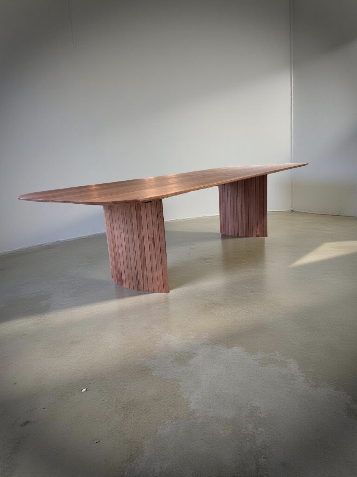 The table features a distinctive fluted timber base that adds an element of sophistication and uniqueness, drawing attention to its remarkable craftsmanship. Available in various sizes, the Stirling table can accommodate different spaces and group sizes, ensuring versatility in your home.