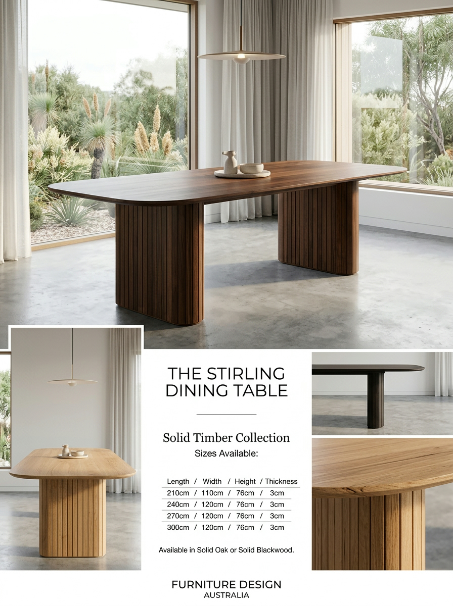Introducing the exquisite Stirling Dining Table, a stunning centrepiece for any dining area. This meticulously handcrafted masterpiece showcases a striking and spacious design, perfect for intimate dinners and larger gatherings.