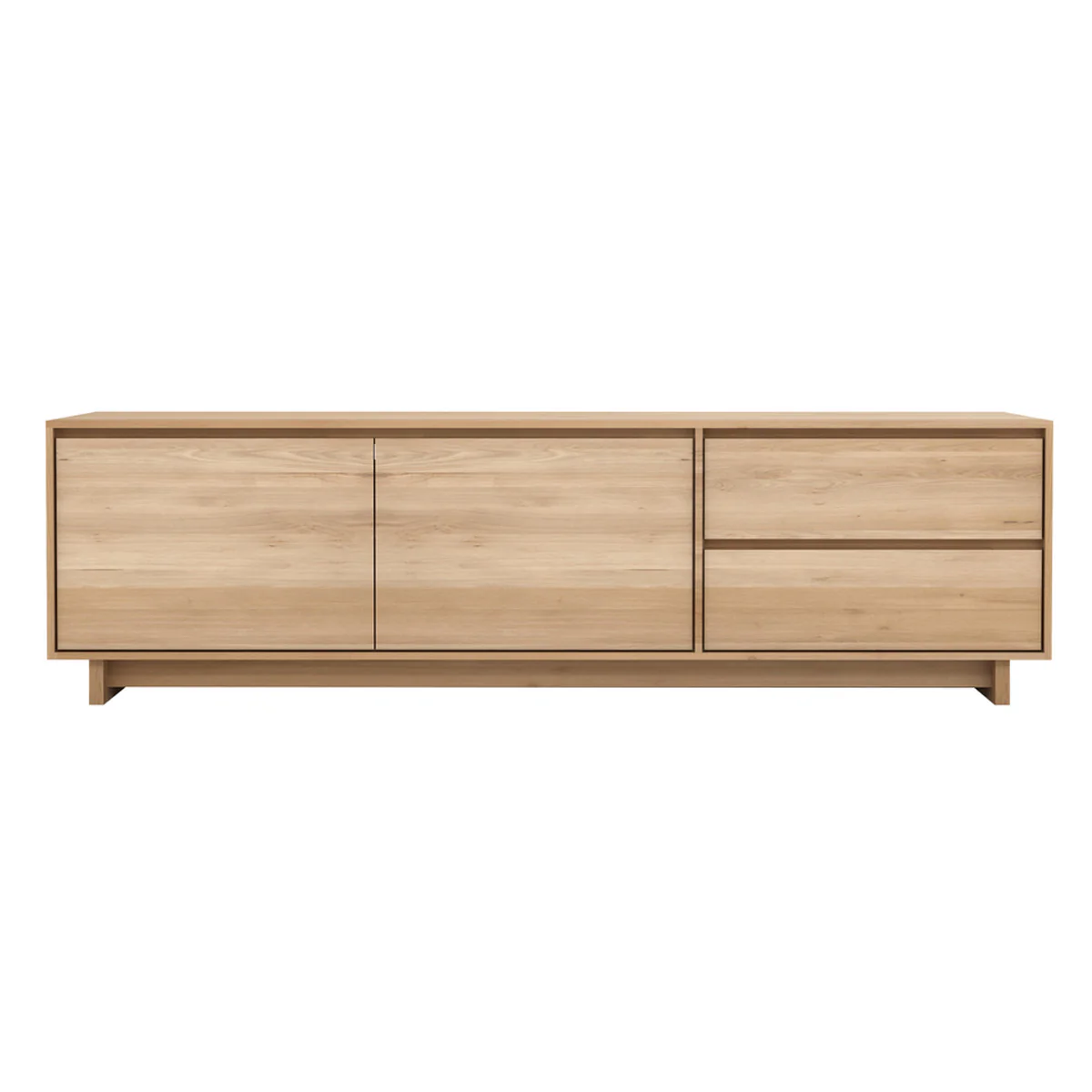The subtle contours of the cabinet doors and the distinguished shape of the feet are what make the Wave collection so special. Made of solid wood, this TV cupboard’s doors and drawers are handleless and feature a soft-closing mechanism.