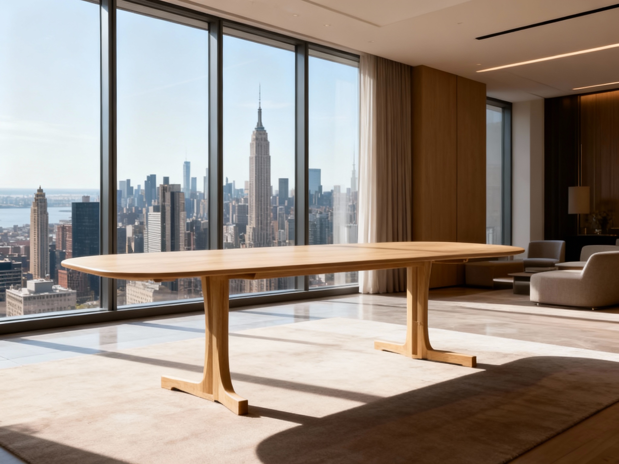 The Middleton dining table is a stunning piece of furniture that combines functionality with artistic design. It boasts an elegant oval-shaped top that measures a substantial 30mm in thickness, crafted from high-quality materials for durability and long-lasting appeal. The undercut profile of the tabletop creates a sleek visual effect, enhancing its modern aesthetic while also making it easy to clean and maintain.